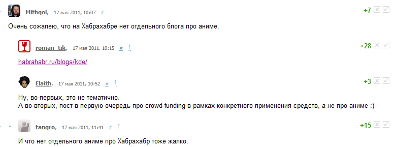А во-вторых, пост в первую очередь про crowd-funding в рамках конкретного применения средств, а не про аниме 🙂