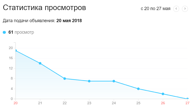 Так же имеет падение интереса к объявлению. Авито сам подсказывает, что вашу вещь можно поднять в поиске за деньги. Проблему можно решить и другим путем, просто обновлять объявление. Т.е. снимать его, править и публиковать. Т.е. довольно много заморочек. Но просмотров больше, чем на Аукционе и VK вместе взятых.